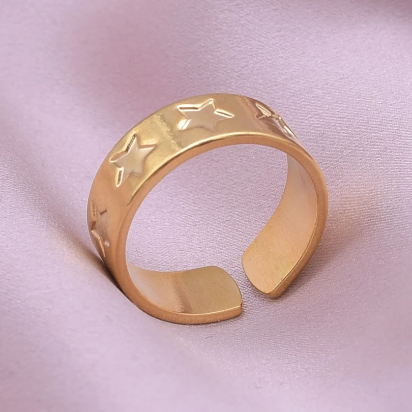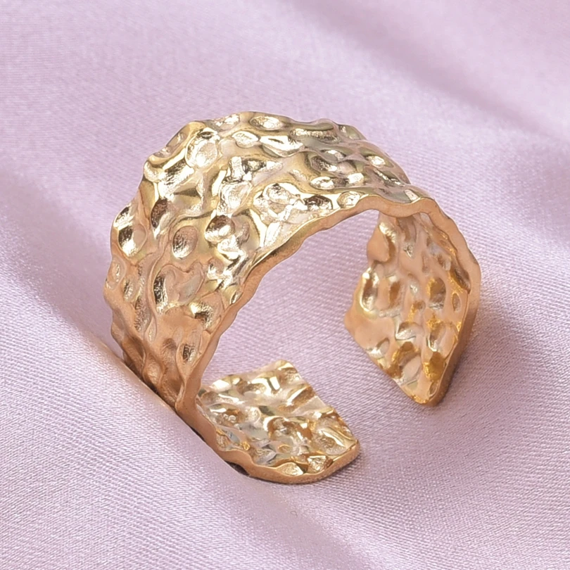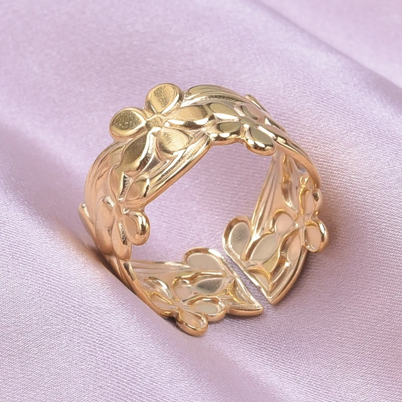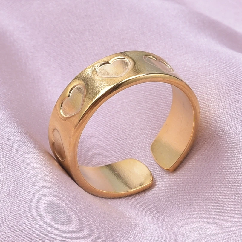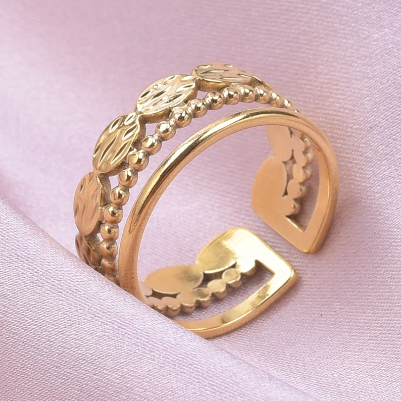 Chic 6pcs/lot Real Gold Color Wide Multi-layer Stainless Steel Ring Love Leaf Rainbow Rings Bulk Sale Women Jewelry Charms Gifts
